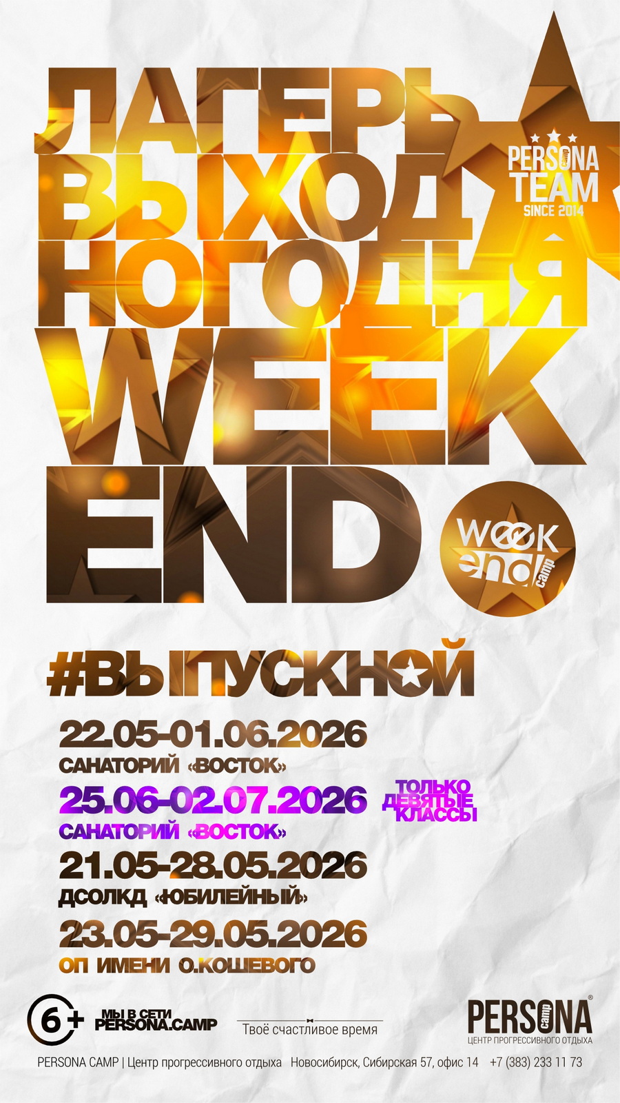 Weekend – лагерь выходного дня для классов и организованных детских групп, предлагающий современные программы для детей от 6 до 17 лет. Каждый проект – это не просто отдых с командой Persona Camp, а невероятное путешествие в мир развлечений, дружбы и яркого отдыха.